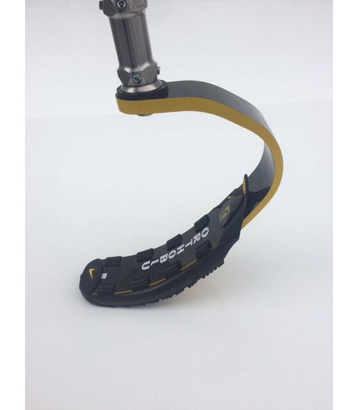 O Flex-Run aprimorado apresenta uma alavanca de dedo mais longa e um retorno de energia eficiente. O solado Nike oferece uma tração excelente para ajudar a melhorar o desempenho do corredor ao mesmo tempo em que melhora a eficiência e os resultados para o protesista.